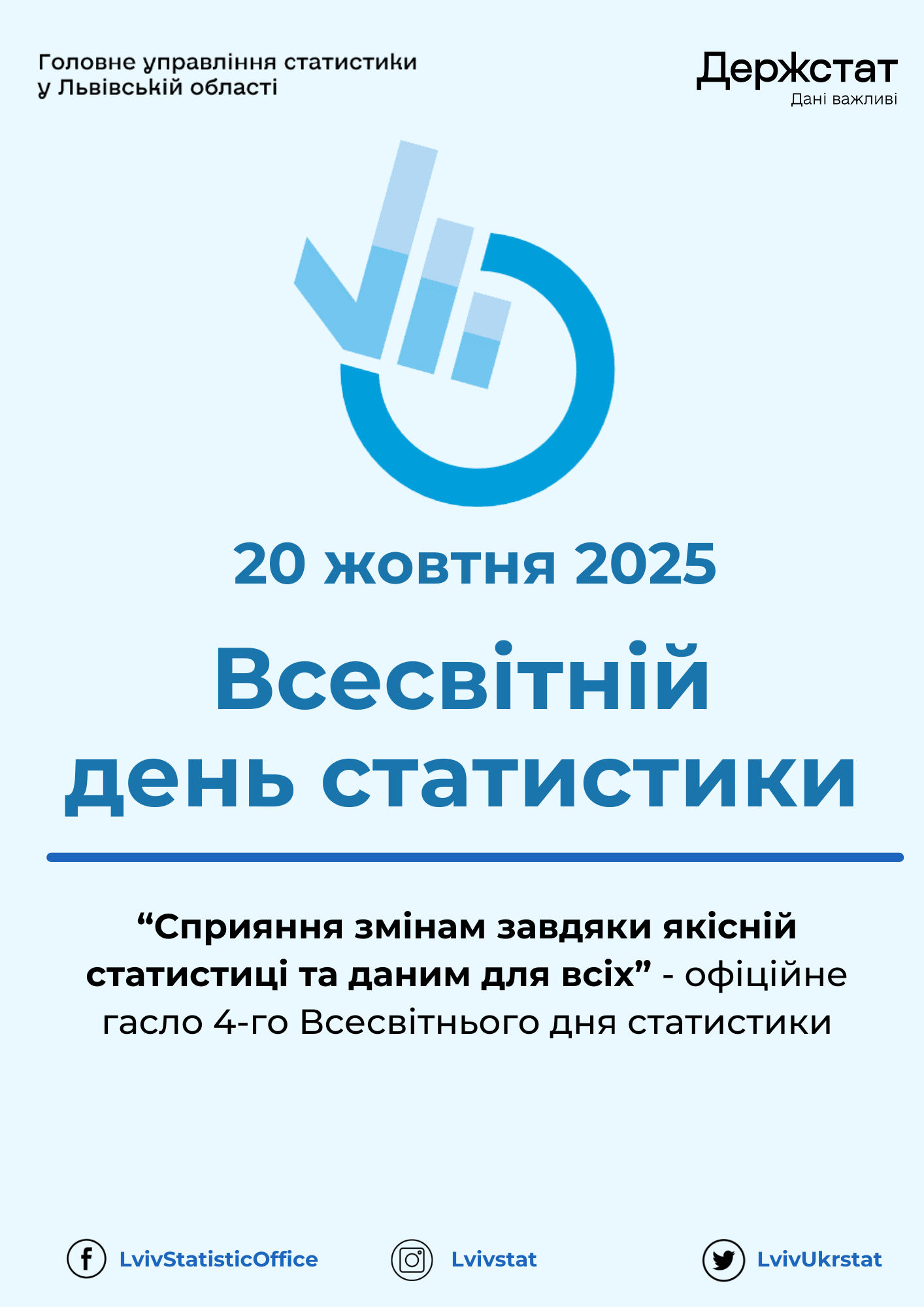 20 жовтня 2025 року світове статистичне співтовариство відзначає 4-й Всесвітній день статистики під гаслом «Сприяння змінам за допомогою якісної статистики та даних для всіх».